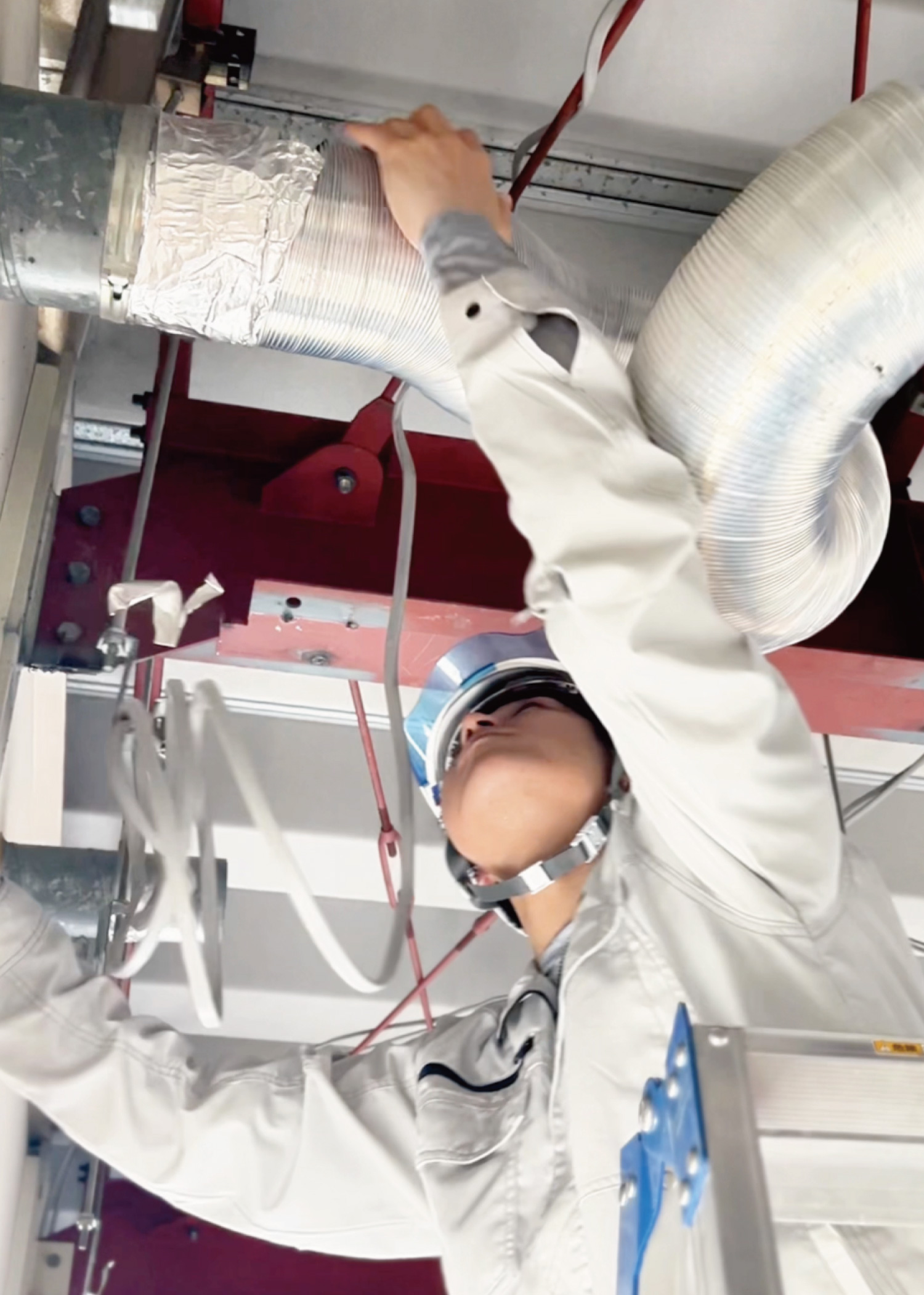久留米市内および近隣の学校、福祉施設、病院、公共施設、集合住宅、工場など様々な場所での工事案件を請け負っています。前年度も他業種より2名の中途採用をしましたが、未経験でも楽しく仕事をしています。
