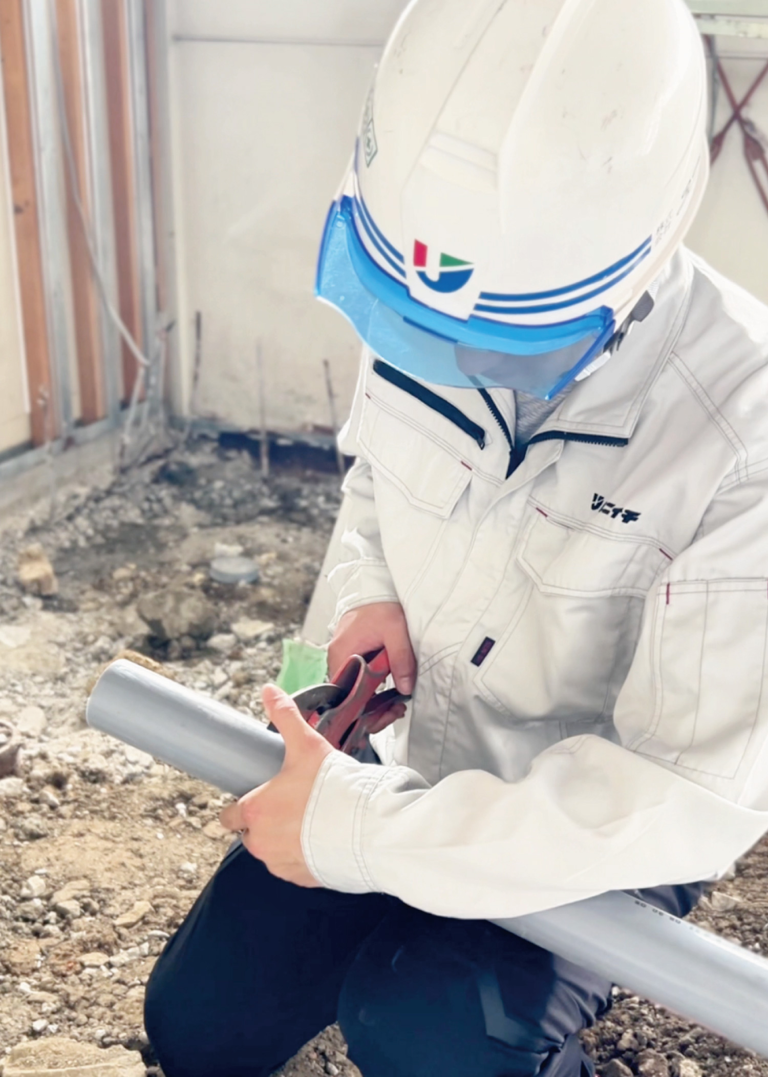 社会に欠かせない、人々の日常生活に必ず必要な仕事に携わりたいと思いこの道に進むことを決めました。現場の管理を行いつつ、施工の手伝いを行ったり、図面の作成などやることはもりだくさん。