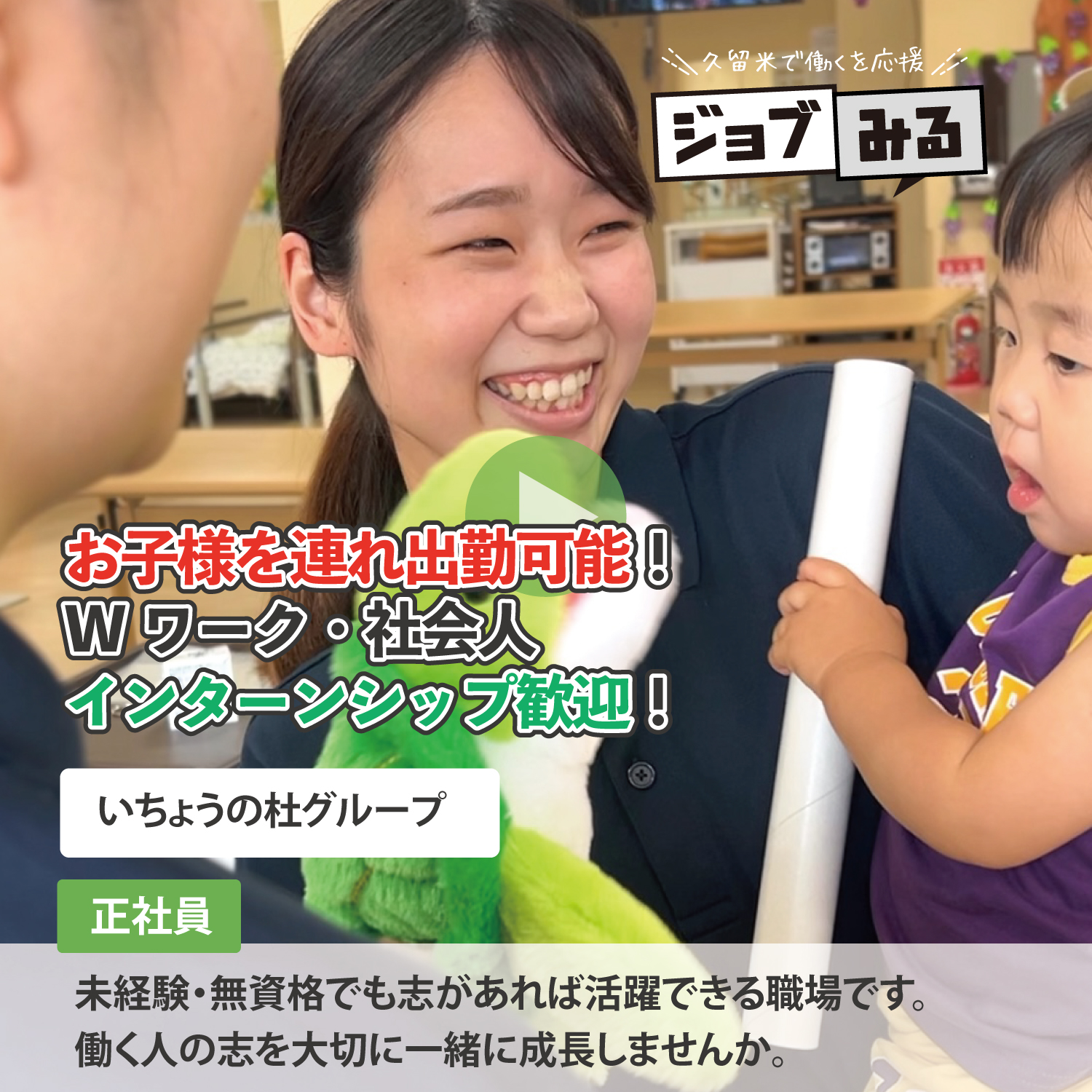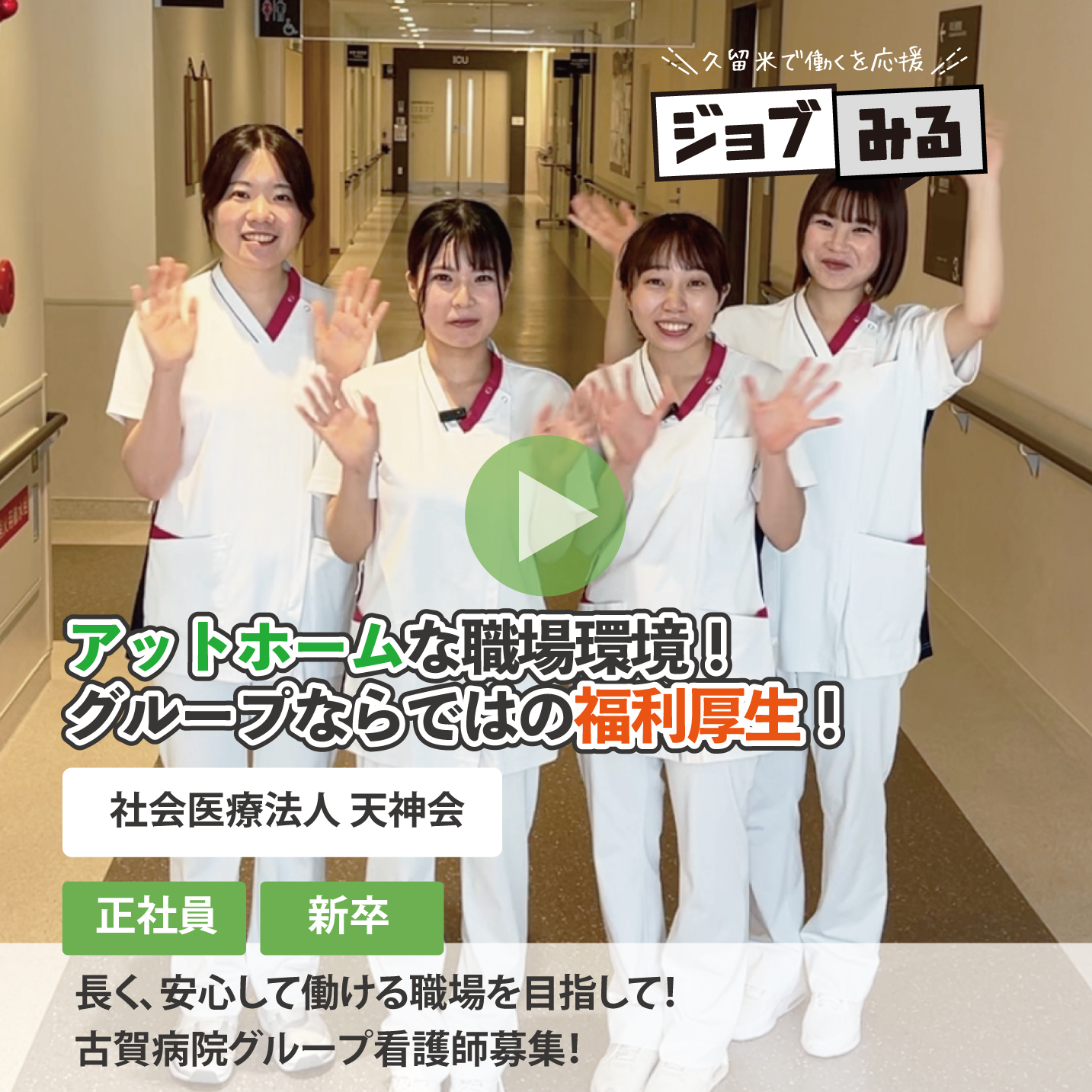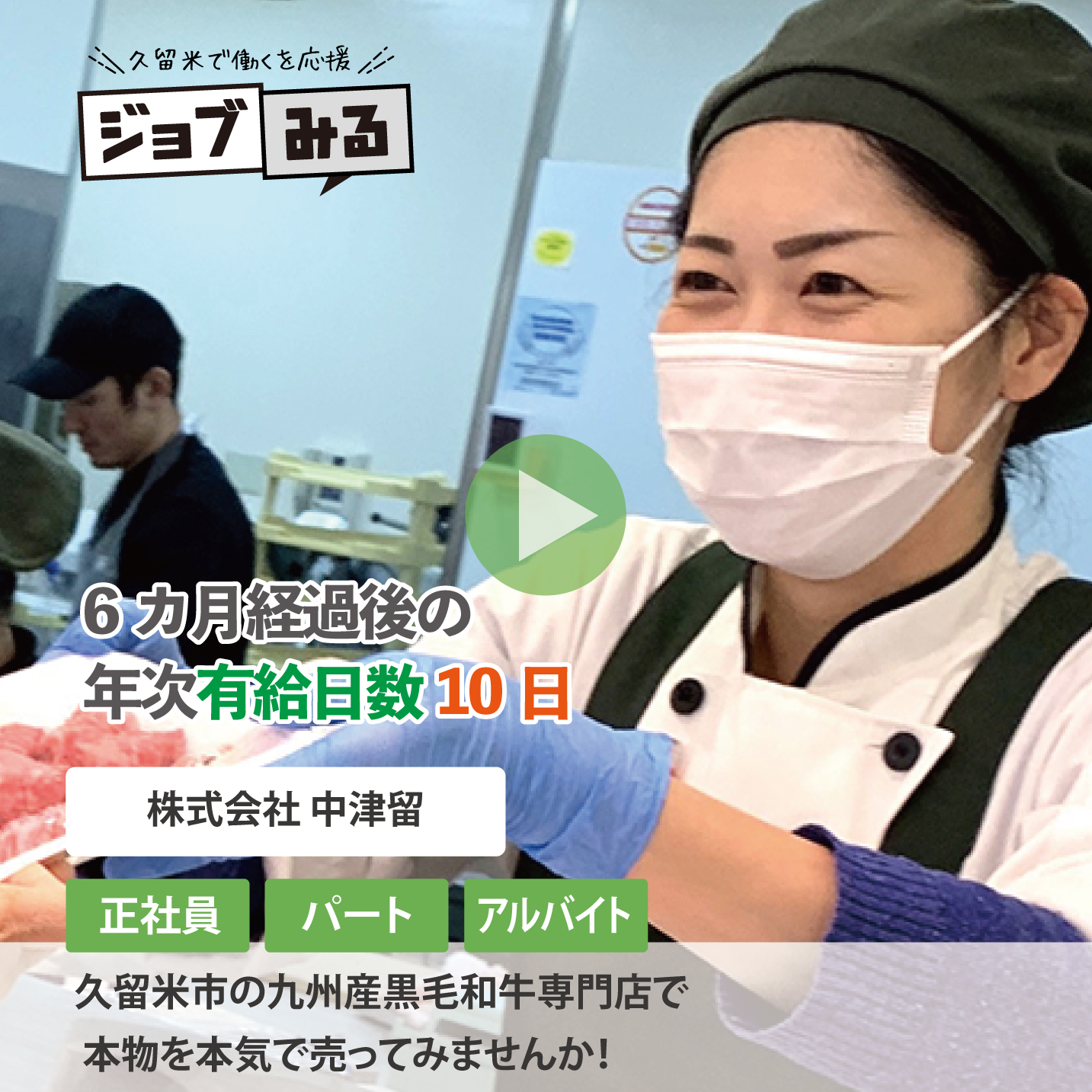 『ジョブみる』では久留米のお仕事を[先輩の声]を通じて分かりやすく動画でご紹介します!自分に合ったお仕事探しにお役立て下さい。