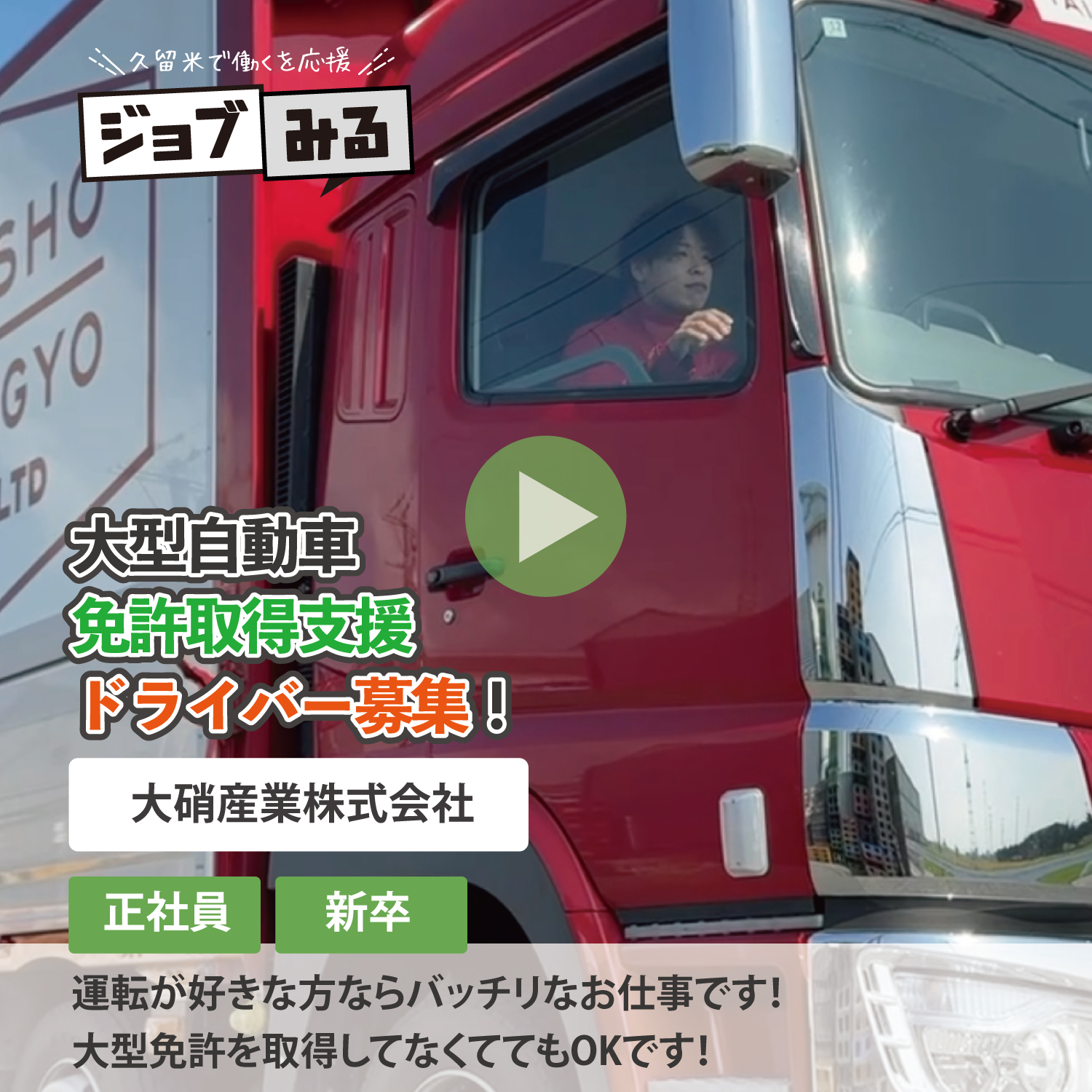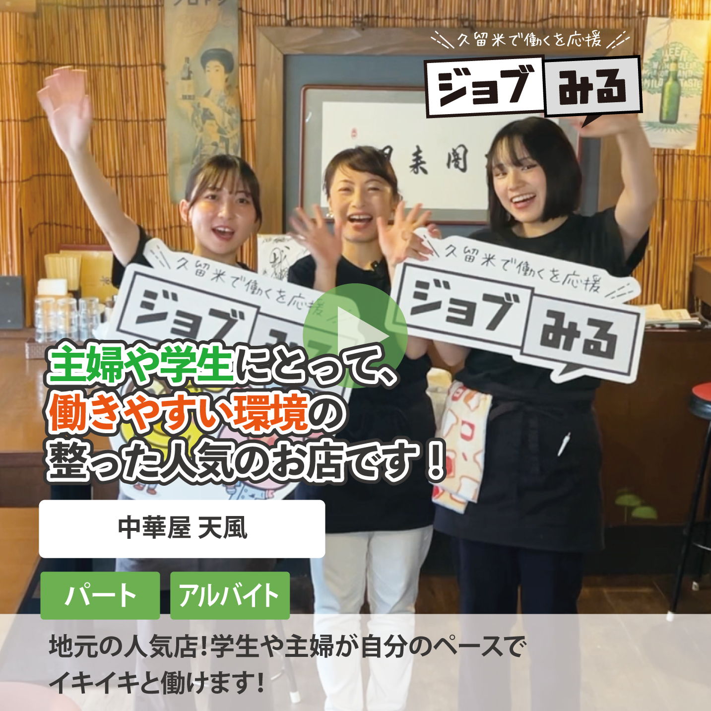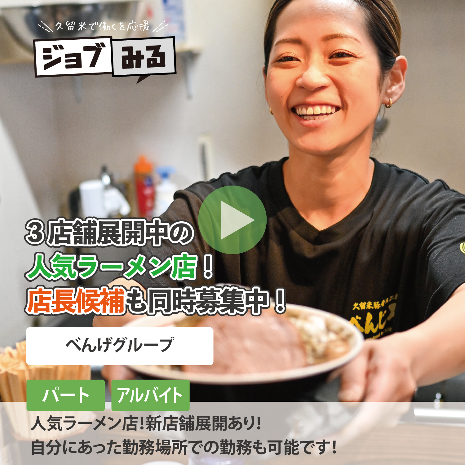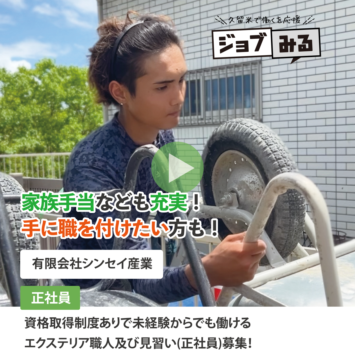 『ジョブみる』では久留米のお仕事を[先輩の声]を通じて分かりやすく動画でご紹介します!自分に合ったお仕事探しにお役立て下さい。