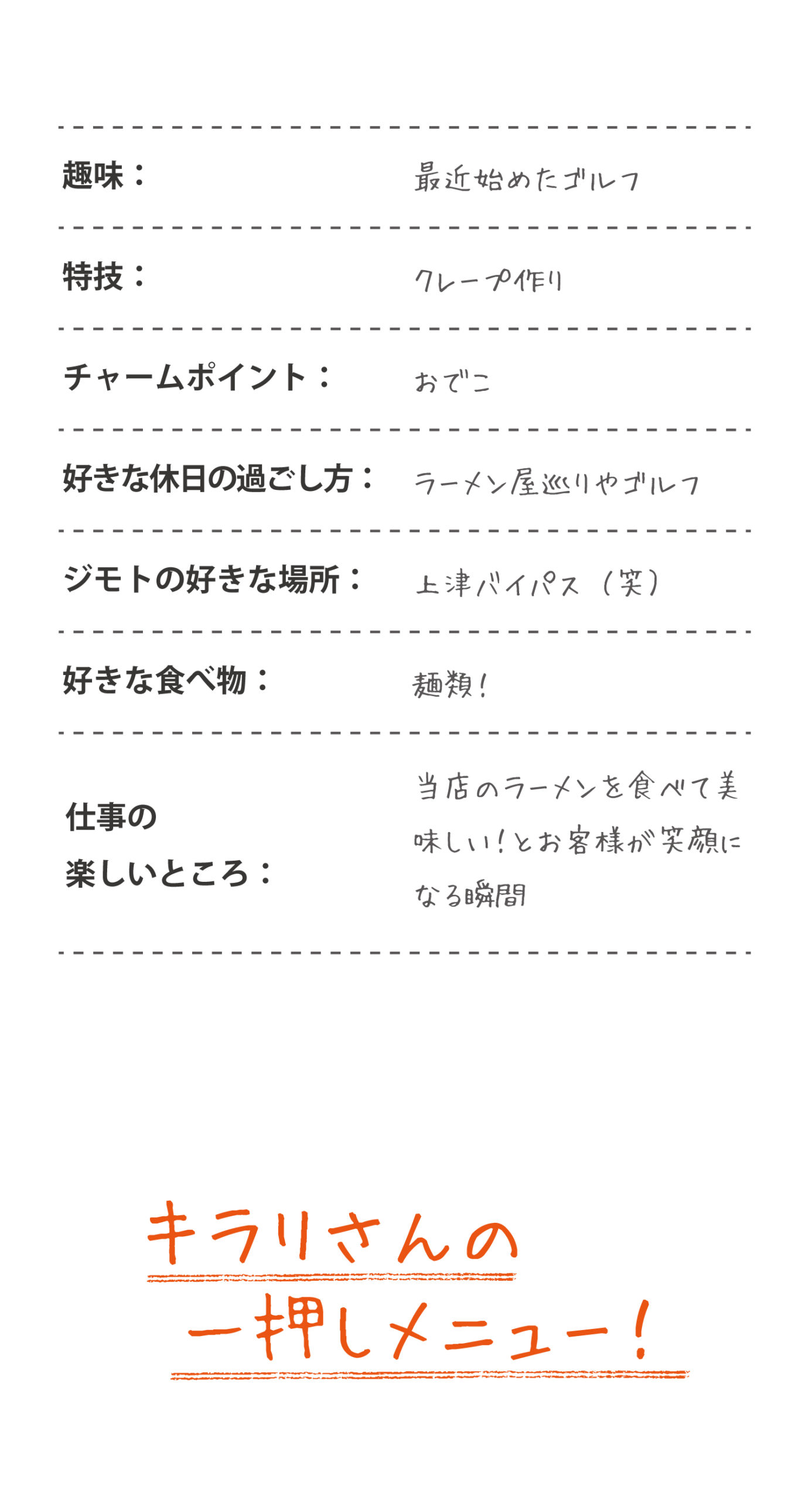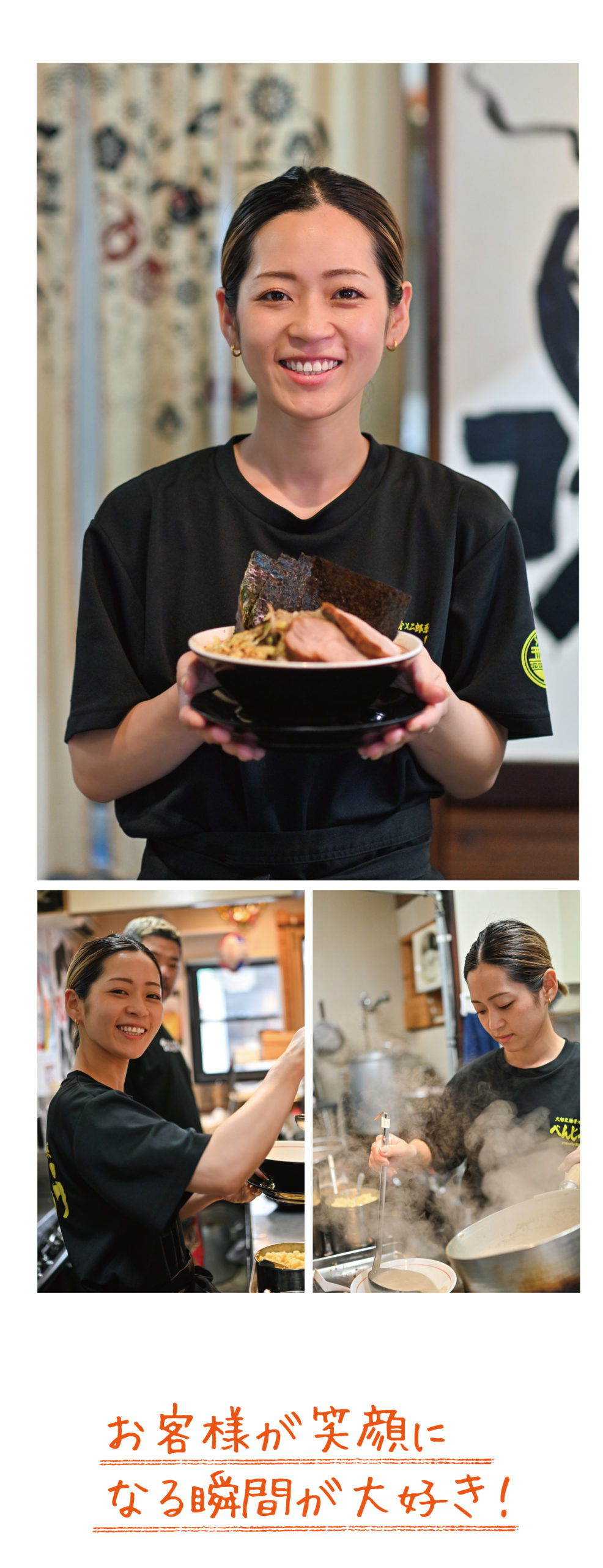 日頃からラーメン屋さんを巡るのが趣味と話す千生さん。若い方からお年寄りまで、ラーメンを食べに来てくれたお客様が『美味しかったよ〜また来ます!』って帰られる時の笑顔が大好き!