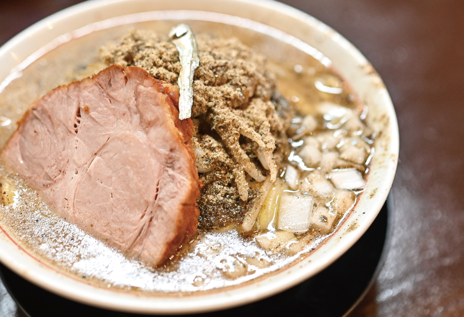 べんじろうをベースに、数種類の魚粉を合わせた特製煮干し粉をたっぷりのせた二郎系だけどあっさり食べれる一杯。
