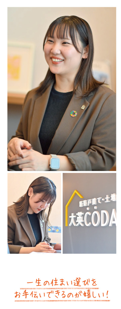 不動産営業職として活躍するもえさんは、「ライフスタイルに合った良質な住まいを提供することで、お客様の大きな決断に立ち会えることがこの仕事の醍醐味です」と語ります。目標を達成した際の達成感ややりがいは、彼女にとって仕事の楽しさそのものだそうです。